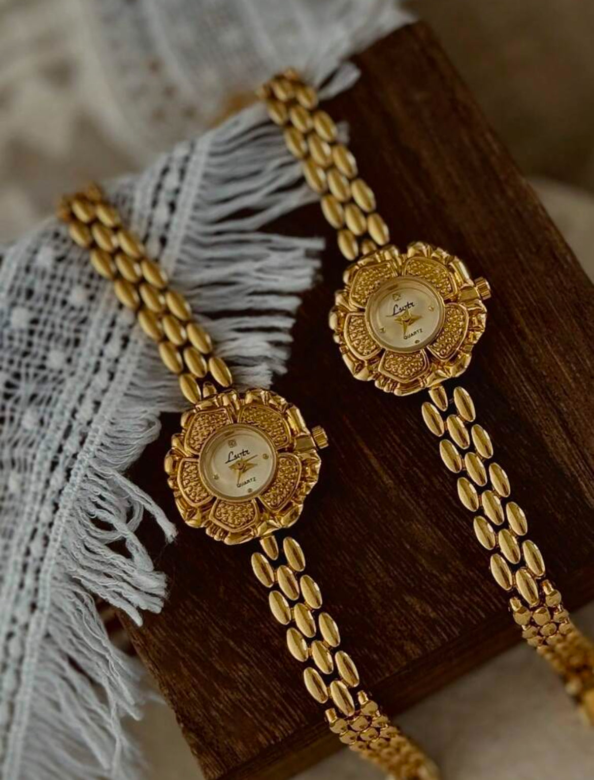 This stunning timepiece exudes classic French elegance with a beautifully detailed floral design, paired with a luxurious gold-tone finish. The sophisticated blend of intricate floral motifs.