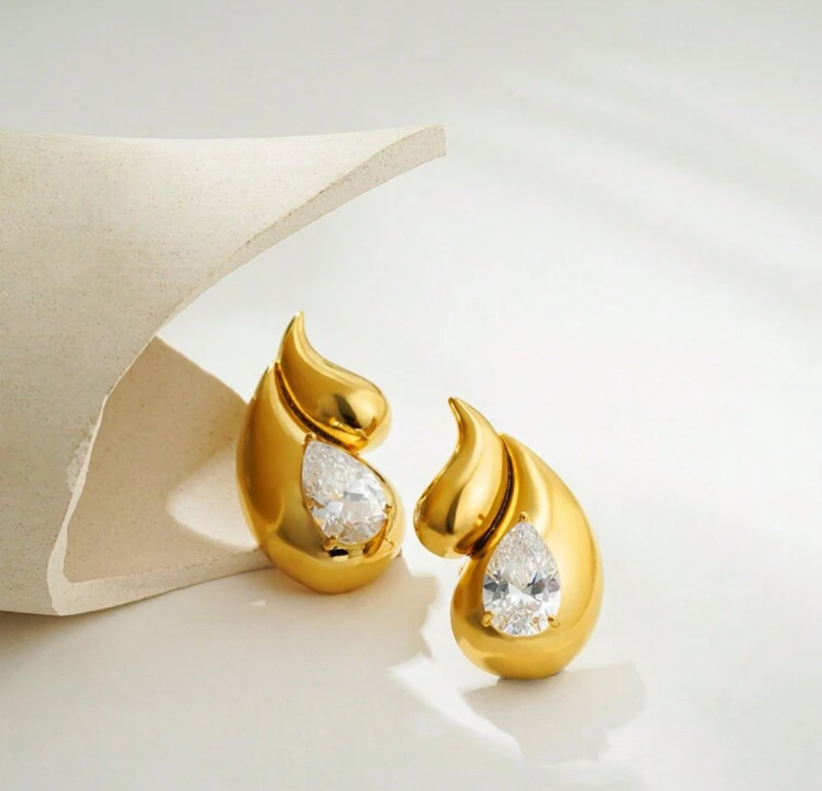 Luxury Teardrop Earrings with Center Diamond – Elegant Jewelry18K Gold Plated